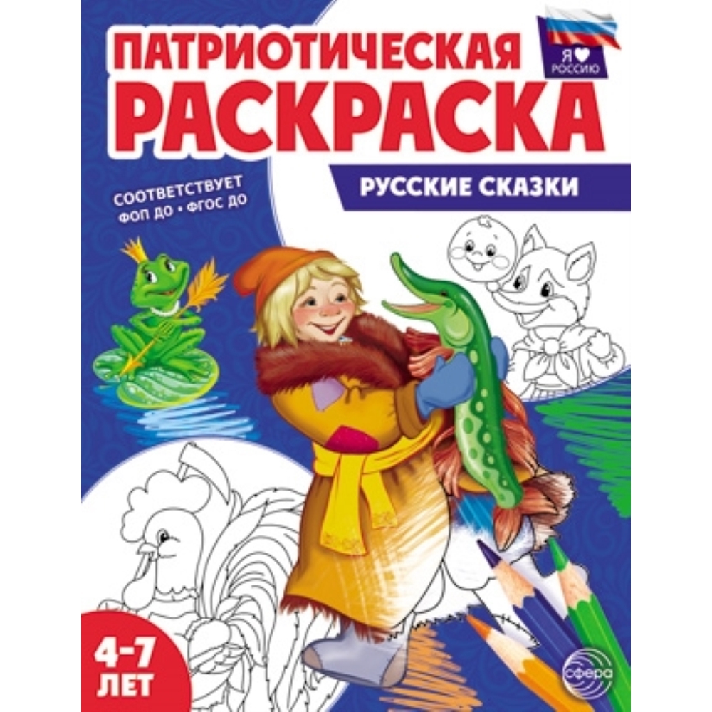 Серия раскрасок «Я люблю Россию» поможет ребёнку развить мелкую моторику и подготовить руку к письму. Каждый сюжет раскраски сопровождается стихотворением. Прочитайте их ребёнку, предложите выучить понравившееся. Дети ознакомятся с символами и праздниками России, волшебными и русскими сказками, с семейными ценностями и традициями, военными профессиями, техникой, народами России, их промыслами и т.д. Раскраски в игровой форме помогут вырастить настоящих патриотов! Соответствует ФОП ДО и ФГОС ДО. В содержание раскраски вошли темы: Маша и медведь, Курочка Ряба, Заюшкина избушка, По щучьему веленью, Колобок, Репка, Снегурочка, Царевна-лягушка.