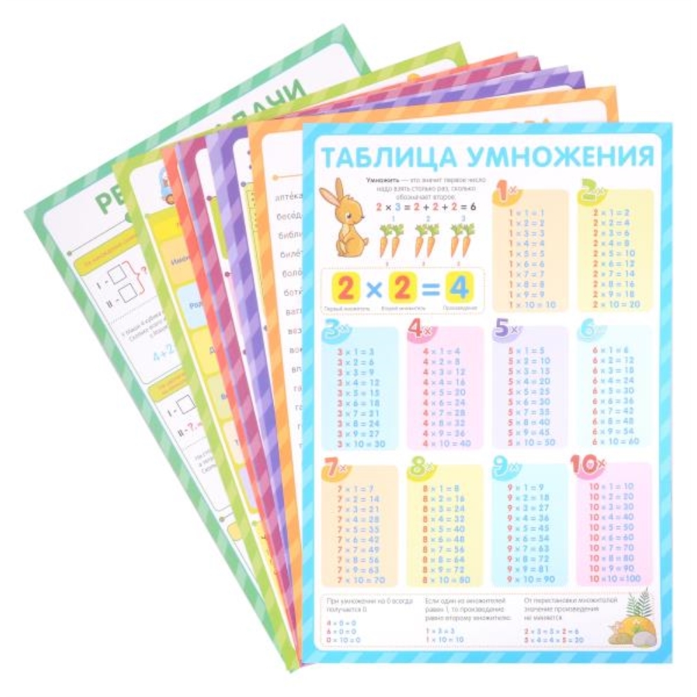 Набор обучающих плакатов для малышей «Учусь на отлично» — это удобный и красочный способ систематизировать знания, выучить самое важное, оформить рабочее место школьника. Это десять самых актуальных тем, которые пригодятся вашему ребёнку в 3-4 классе начальной школы и для гармоничного всестороннего развития: таблица умножения, словарные слова, дроби и падежи, неправильные глаголы. Занимайтесь вместе с плакатами «Учусь на отлично» — учитесь в школе с интересом и лёгкостью!