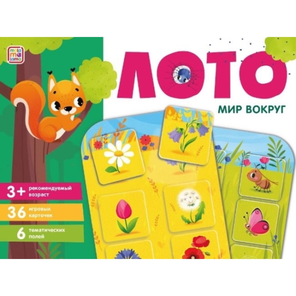Лото «Мир вокруг» — это полезное и увлекательное развлечение для малышей! Набор включает в себя яркие карточки изображениями животных фермы, леса, джунглей и многих других, а также тематические поля для них. Лото не только развлечет вашего малыша, но и поможет ему развить важные навыки и способности. Маленькие дети будут с удовольствием исследовать картинки, тренировать память и внимание, а также учиться сортировать и сравнивать предметы. Карточки имеют удобный размер для детских рук и изготовлены из прочного многослойного картона. Проводите время весело и с пользой вместе с Malamalama!