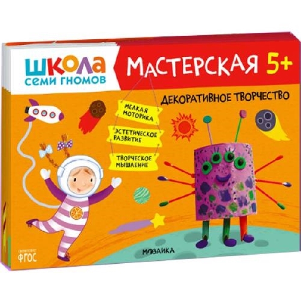 Школа семи гномов. Мастерская 4+ (набор из 5 альбомов для творчества) «Школа Семи Гномов. Мастерская 4+» — это набор красочных альбомов для увлекательных занятий творчеством с детьми от 4 до 5 лет. Занятия на близкие и понятные ребенку темы расположены по мере усложнения: поступательно переходя от освоения простых навыков к более сложным заданиям. Результатом каждого занятия станет законченное произведение, которое ребенок создал сам. В конце альбома маленького художника ждет большое итоговое задание, где он сможет применить все свои новые умения. В набор входят 5 альбомов, с которыми ребенок научится создавать: • аппликации с помощью бумаги и клея (альбом «Аппликация»); • творческие работы из подручных материалов с помощью клея и пластилина (альбом «Декоративное творчество»); • творческие работы на бумаге с помощью пластилина (альбом «Лепка»); • рисунки с помощью карандашей или фломастеров (альбом «Рисуем карандашами»); • рисунки с помощью красок и кисточки (альбом «Рисуем красками»).