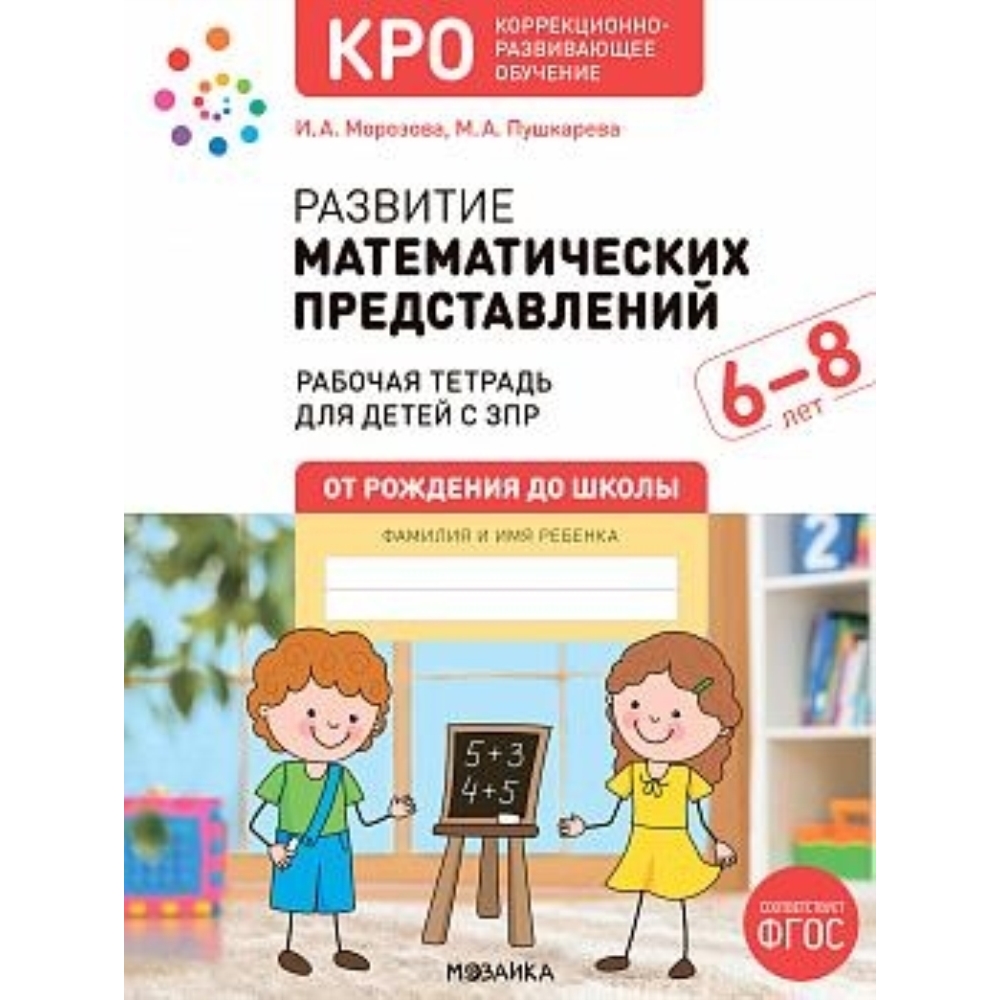 КРО. Развитие математических представлений. Рабочая тетрадь. 6-8 лет. ФГОС Данная рабочая тетрадь вместе с книгой «Развитие элементарных математических представлений» составляет методический комплект по развитию математических представлений у детей 6–8 лет с задержкой психического развития. Рабочая тетрадь может использоваться как в комплекте с методическим пособием, так и отдельно. Предлагаемые в пособии задания способствуют развитию мелкой моторики рук, формированию графических навыков, помогают ребенку научиться писать цифры. Работа ребенка в тетради — это заключительный этап каждого занятия по развитию элементарных математических представлений. (Нумерация занятий в рабочей тетради соответствует нумерации занятий в пособии «Развитие элементарных математических представлений».)