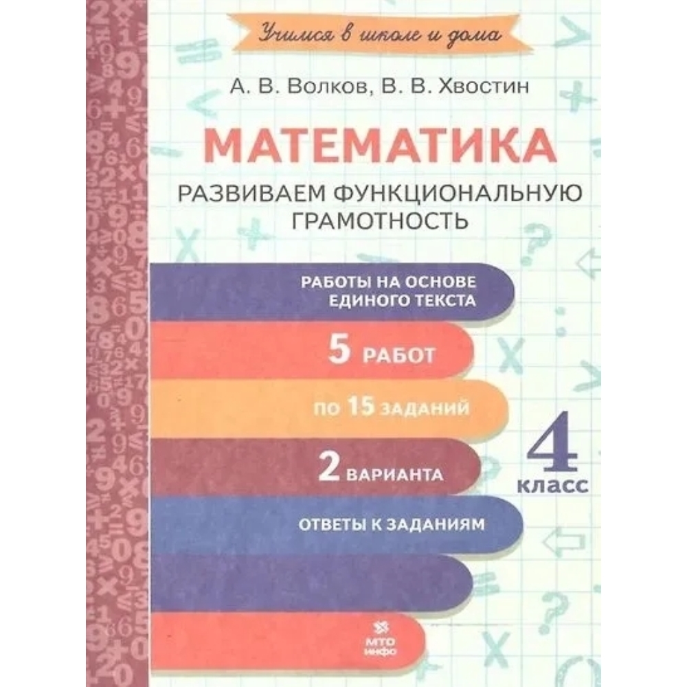 Данное пособие предназначено для формирования у учащихся математической функциональной грамотности, умения осознанно применять полученные знания по математике для решения жизненных задач. В пособии максимально охвачены все темы, изучаемые в курсе математики в 4-м классе. Тетрадь включает 5 работ в 2-х вариантах. Каждая работа состоит из информационно-познавательного текста и 15 заданий, для выполнения которых необходимо найти и использовать информацию из текста. В тетрадь включены ответы к заданиям. Состав и сложность заданий в данном пособии соответствует ФГОС НОО.
