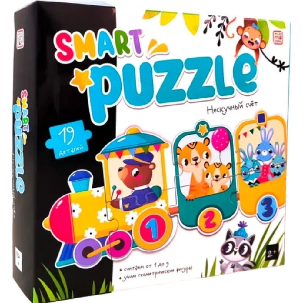 Пазл «Поезд. Счёт» — весёлая развивающая игра-головоломка, которая в интерактивной форме познакомит ребёнка со счётом от 1 до 9. Складывая верхние и нижние половинки вагончиков, а затем соединяя их вместе в поезд, малыш научится соотносить цифры и количества предметов и запомнит порядок чисел. Пазл выполнен из плотного картона, крупные детали не выскальзывают из детских ручек и легко соединяются друг с другом.