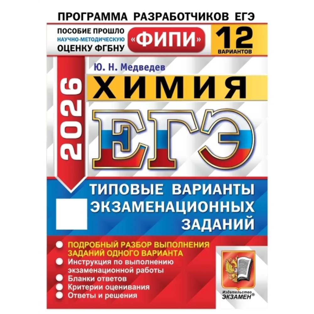 Пособие содержит 12 типовых вариантов экзаменационных заданий Единого государственного экзамена по химии.