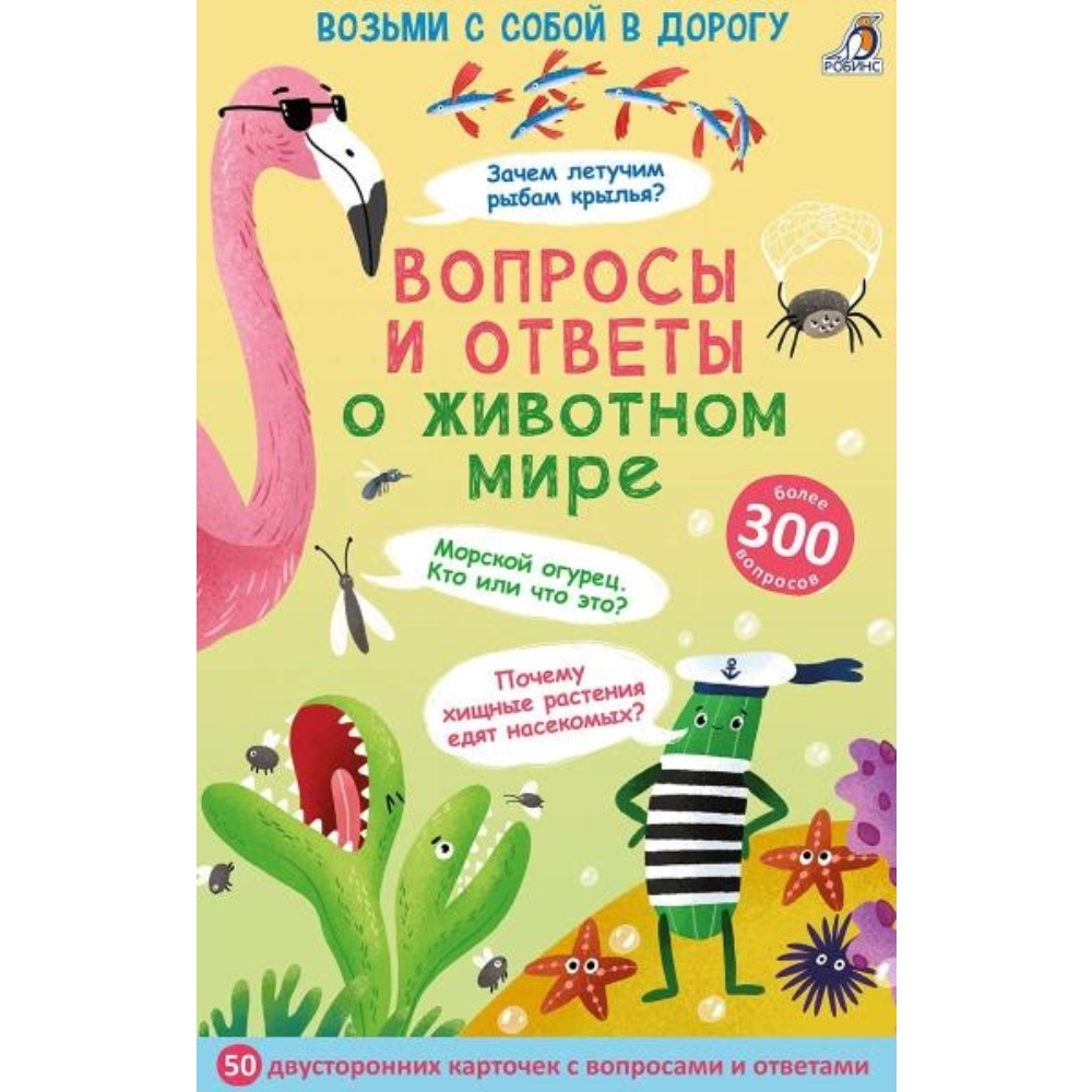 Почему ленивец такой медлительный? Зачем ежику иголки? Почему многие обезьяны такие лохматые, а боятся холода? Какое насекомое может охотиться на маленьких змей, черепах и лягушек? В набор входит 50 двусторонних многоразовых карточек с самыми интересными вопросами и ответами на самые часто задаваемые и необычные вопросы о животном мире. Даже взрослые будут с удовольствием читать вопросы и находить ответы. Его автор - Александр Толмачев (аккаунт в Инстаграм @detlektor, более 800 000 подписчиков), популяризатор науки, радиоведущий и автор лекций для детей. Играя с карточками, ребенок узнает интересные факты из жизни животных, их среде обитания, повадках, взаимоотношениях друг с другом и с человеком В чём особенность набора: - Каждая карточка – это интересная задачка и яркая картинка. - Размер карточек 15 х 11см. - Благодаря удобному формату карточки можно брать с собой в дорогу. - Карточки сделаны из картона и покрыты защитной плёнкой. - Занятия с набором способствуют развитию внимания, памяти, логики, мышления, а также расширяют кругозор. Что найдем внутри: 50 двусторонних карточек с вопросами о животном мире, ответами и пояснениями к ним. Важно знать родителям: - Набор карточек предназначен для детей от 3 лет, но также подойдет для детей дошкольного и школьного возраста и взрослых. - Рекомендовано как для индивидуальных, так и для групповых занятий, а также для игр в семье, в компании и в поездках.