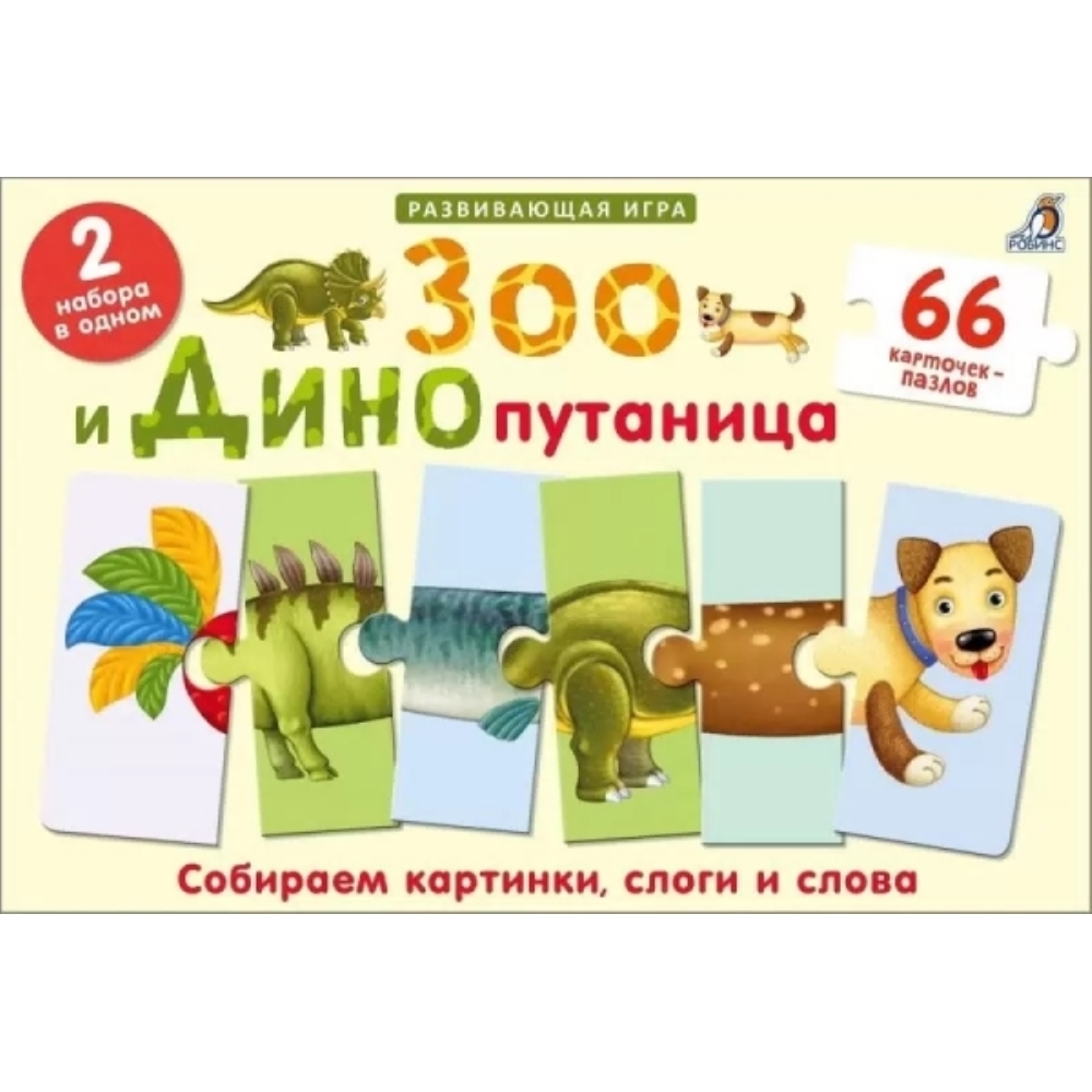 Увлекательная развивающая игра позволит малышу не только весело провести время, но и узнать много нового, а также научиться читать в игровой форме. Как играть? Из 66 двусторонних карточек-пазлов ребенок может складывать картинки с изображением животных и динозавров и их названия, состоящие из трёх слогов. Если картинка собрана правильно, на обратной стороне получится правильное название животного или динозавра, и картинки, ассоциативно с ним связанные. Если неверно – несуществующее животное или динозавр и его смешное название. Все карточки-пазлы идеально стыкуются друг с другом, поэтому из них можно составлять длинные «колбаски» забавных несуществующих зверей! Попросите ребёнка прочитать названия получившихся необычных зверей и рассказать про них весёлые сказочные истории. Такие задания отлично стимулируют развитие речи и творческого мышления у детей! В чем особенность набора: Карточки можно брать с собой в дорогу. Пазлы сделаны из плотного картона и прослужат очень долго. Игра способствует развитию мышления, зрительного восприятия, усидчивости, внимательности, мелкой моторики и воображения. Карточки подходят как для самостоятельных занятий, так и для групповых игр. Все наборы-путаницы идеально стыкуются друг с другом («Зоопутаница», «Зверопутаница», «Динопутаница» и «Технопутаница»). Что найдем внутри: 33 карточки-пазла с красивыми большими картинками. Важно знать родителям: Два набора «Путаниц» в одной удобной и прочной коробке с магнитной крышкой; В увлекательной игровой форме дети познакомятся с различными животными и динозаврами, узнают, где они живут, чем питаются и многое другое,будут фантазировать, составляя изображения несуществующих зверей и динозавров, и захотят самостоятельно прочитать получившиеся названия, что станет отличным стимулом к обучению чтению. Набор карточек предназначен для детей от 3 лет, но подойдет и для более младшего возраста. Идеально подходит как для индивидуальной игры, так и для использования в детских дошкольных учреждениях.