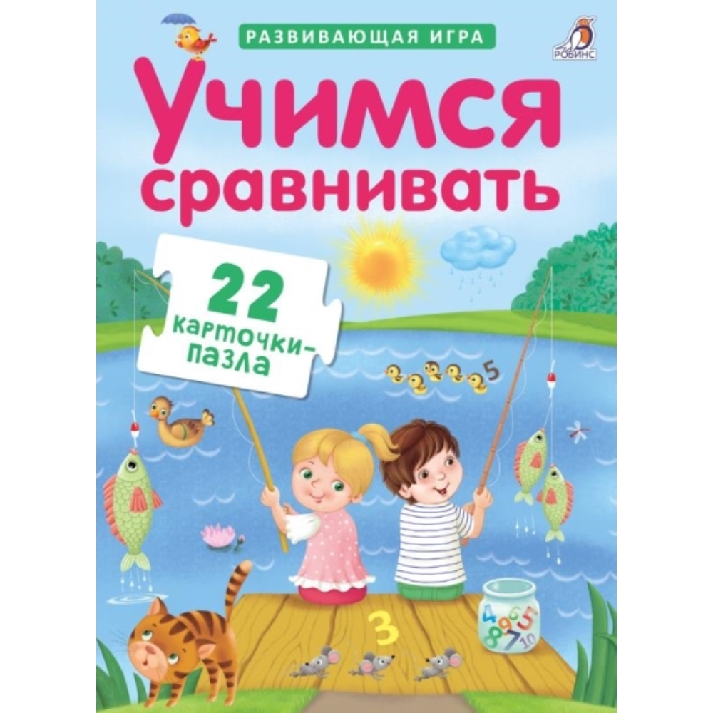 «Учимся сравнивать» – это обучающая игра для детей от 3 лет, состоящая из 22 карточек-пазлов и 1 карточки с инструкцией. С ее помощью ваш ребёнок легко и быстро научится сравнивать количество предметов и числа. Набор так же можно использовать для запоминания цифр и обучения счёту, если ваш малыш ещё не умеет это делать. Занятия с карточками способствуют развитию мышления, памяти, внимания и мелкой моторики. Составляйте упражнения самостоятельно или пользуйтесь карточкой-инструкцией. Пособие предназначено как для индивидуальных занятий с детьми дома, так и для использования в детских дошкольных учреждениях.