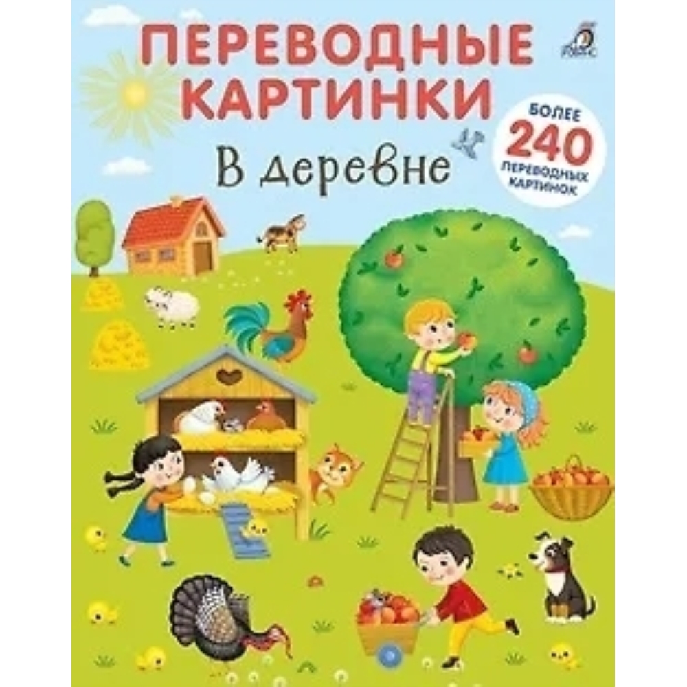 Переводные картинки: В деревне. Перед вами более 240 ярких картинок-переводилок и 9 тематических фонов, которые познакомят ребенка с забавными обитателями деревни. Узнайте, как "говорят" домашние животные и чем заняты деревенские жители. Переведите картинки, создайте 9 неповторимых историй и ответьте на вопросы о героях на каждом развороте.