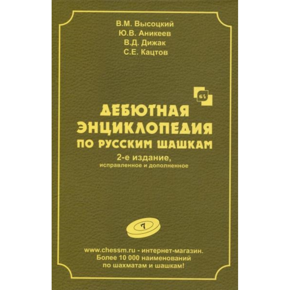 «Международный мастер В.М. Высоцкий, международный гроссмейстер Ю.В. Аникеев, шашечный аналитик В.Д. Дижак и мастер спорта С.Е. Кацтов повторно проанализировали и уточнили в этой работе около 500 теоретических вариантов. Для широкого круга любителей шашечной игры.» Специальный редактор С.Е. Кацтов, мастер спорта.