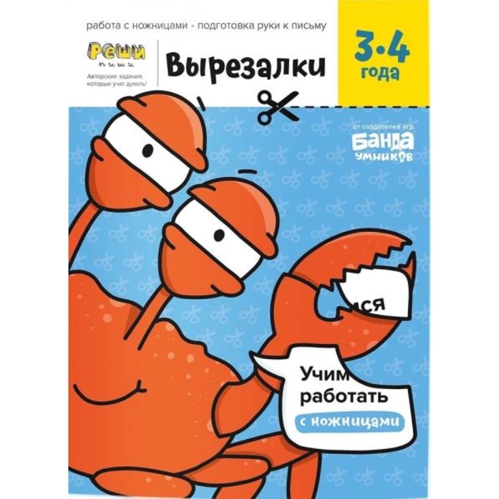Умные упражнения на вырезание. Развивают пространственное мышление и аккуратность, готовят руку к письму. Развиваем: навык работы с ножницами; пространственное мышление; аккуратность и усидчивость; мелкую моторику. Зачем учиться вырезать? Разрезая лист, мы совершаем десятки скоординированных движений: придерживаем и поворачиваем лист, контролируем направление разреза, смыкаем и размыкаем ножницы. Поэтому ребенку не сразу удается выполнить даже один простой разрез. Осваивая навык работы с ножницами, дети развивают мелкую моторику, готовят руку к письму, учатся работать со сложным инструментом, тренируют внимательность и аккуратность. В серии "Вырезалки" две тетради разного уровня сложности: В первой тетради для детей 3-4 лет малыши учатся делать простые прямые разрезы и плавные изгибы. Во второй тетради для детей 4-5 лет задания становятся сложнее: разрезанный лист превращается в небольшую поделку с интересным сюжетом. 15 заданий. 32 страницы формата А4.