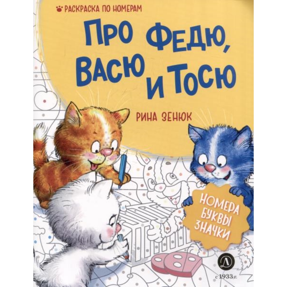 За синими котами Рины Зенюк следят во всём мире! А котята Федя, Вася и Тося стали настоящими любимцами: каждый день они находят новые приключения, к которым уж очень хочется присоединиться! Поэтому предлагаем окунуться в творческий процесс с любимыми персонажами. Перед вами увлекательные раскраски по номерам, цветам, символам. Запаситесь цветными карандашами и любопытством! Выполнив задание на каждой странице, у вас получится забавный сюжет. Отличный вариант для совместного досуга с детьми!