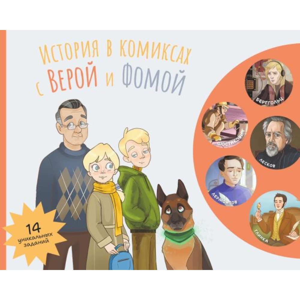 Отправляемся в уникальное историческое путешествие вместе с Верой и Фомой! В этом комиксе собраны воодушевляющие и увлекательные рассказы о пяти великих людях России, их добродетельных поступках и свершениях. Вместе с героями комикса мы будем знакомиться с культурой нашей страны и выполнять интересные задания - разгадывать кроссворды и шифры, клеить наклейки, узнавать новые слова и раскрашивать карандашами картинки. Проект «Вера и Фома» помогает детям развиваться в образовательном и духовно-нравственном направлении.