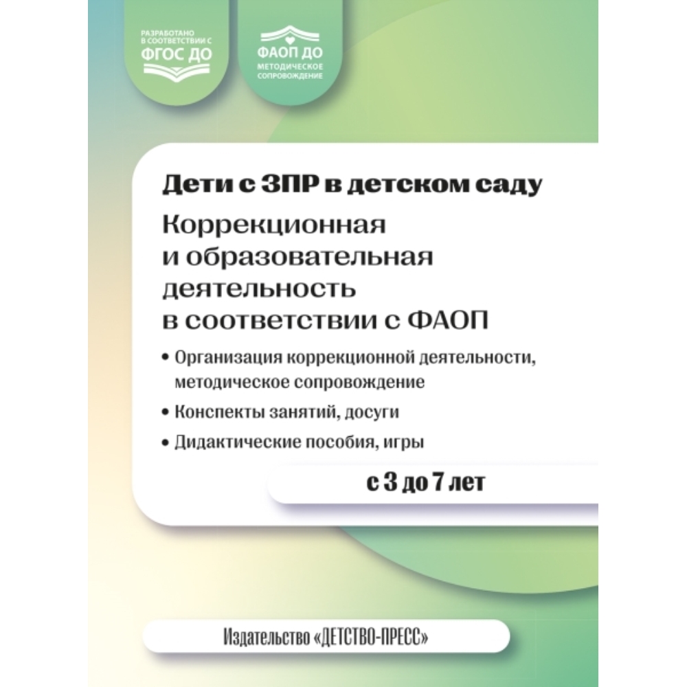 - Дети с ЗПР в детском саду. Коррекционная и образовательная деятельность в соответствии с ФАОП