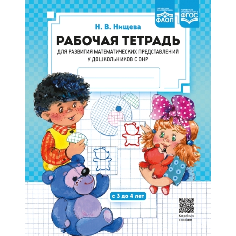 Рабочая тетрадь входит в методический комплект к пособию Н. В. Нищевой «Развитие математических представлений у дошкольников с ОНР (с 3 до 4 лет) и содержит игровые задания и упражнения для формирования у малышей представлений о величине, форме, цвете, количестве предметов, что важно не только для познавательного, но и для речевого развития ребенка, так как создает фундамент для развития речи. Может использоваться как в работе с детьми с речевыми нарушениями, так и в работе с детьми с нормальным речевым и интеллектуальным развитием. Рекомендовано педагогам ДОО и родителям дошкольников.