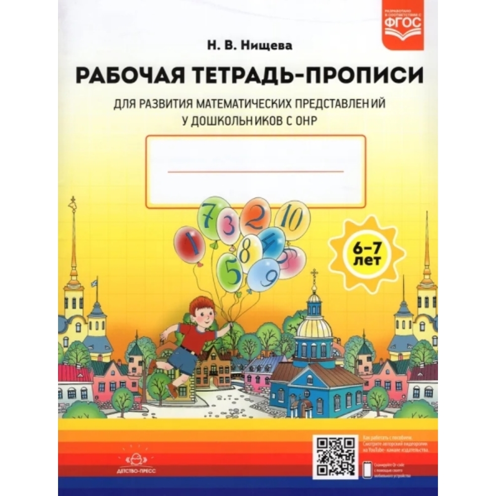 Рабочая тетрадь-прописи входит в методический комплект к пособию Н. В. Нищевой "Развитие математических представлений у дошкольников с ОНР (с 6 до 7 лет)" и содержит игровые задания и упражнения для совершенствования навыков ориентировки на плоскости, на бумаге в клетку, навыков количественного и порядкового счета в пределах десяти, присчитывания двойками и пятками, установления взаимно однозначного соответствия между множествами, формирования умения пользоваться математическими знаками, умения писать цифры и решать примеры, что важно не только для познавательного развития ребенка, но и для подготовки к школьному обучению в целом. Может использоваться как в работе с детьми с речевыми нарушениями, так и в работе с детьми с нормальным речевым и интеллектуальным развитием. Рекомендовано педагогам ДОО и родителям дошкольников.