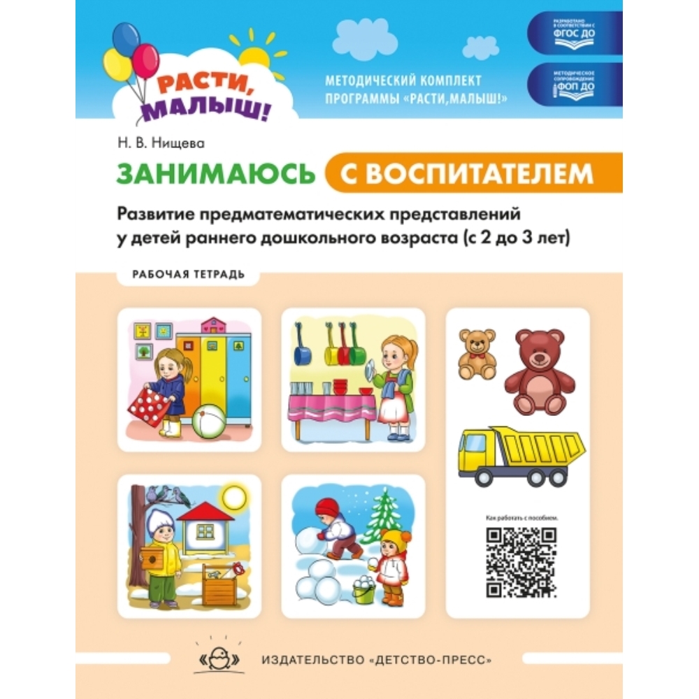 - Расти, малыш! Занимаюсь с воспитателем. Развитие предматематических представлений у детей раннего дошкольного возраста (с 2 до 3 лет). Рабочая тетрадь