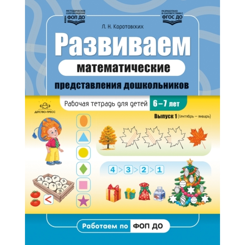 Рабочая тетрадь по развитию математических представлений дошкольников предназначена для работы с детьми подготовительной к школе группы детского сада. Она входит в комплект авторской образовательной программы, но может использоваться и самостоятельно. Работа с тетрадью не только поможет сформировать у дошкольников первичные математические представления, но и будет способствовать развитию у детей познавательных способностей, речевых навыков, активности и самостоятельности, тем самым подготавливая малышей к успешному обучению в школе. Первый выпуск тетради предназначен для занятий с детьми в период с сентября по январь. Адресовано практикующим работникам ДОО, но будет полезно и родителям старших дошкольников.