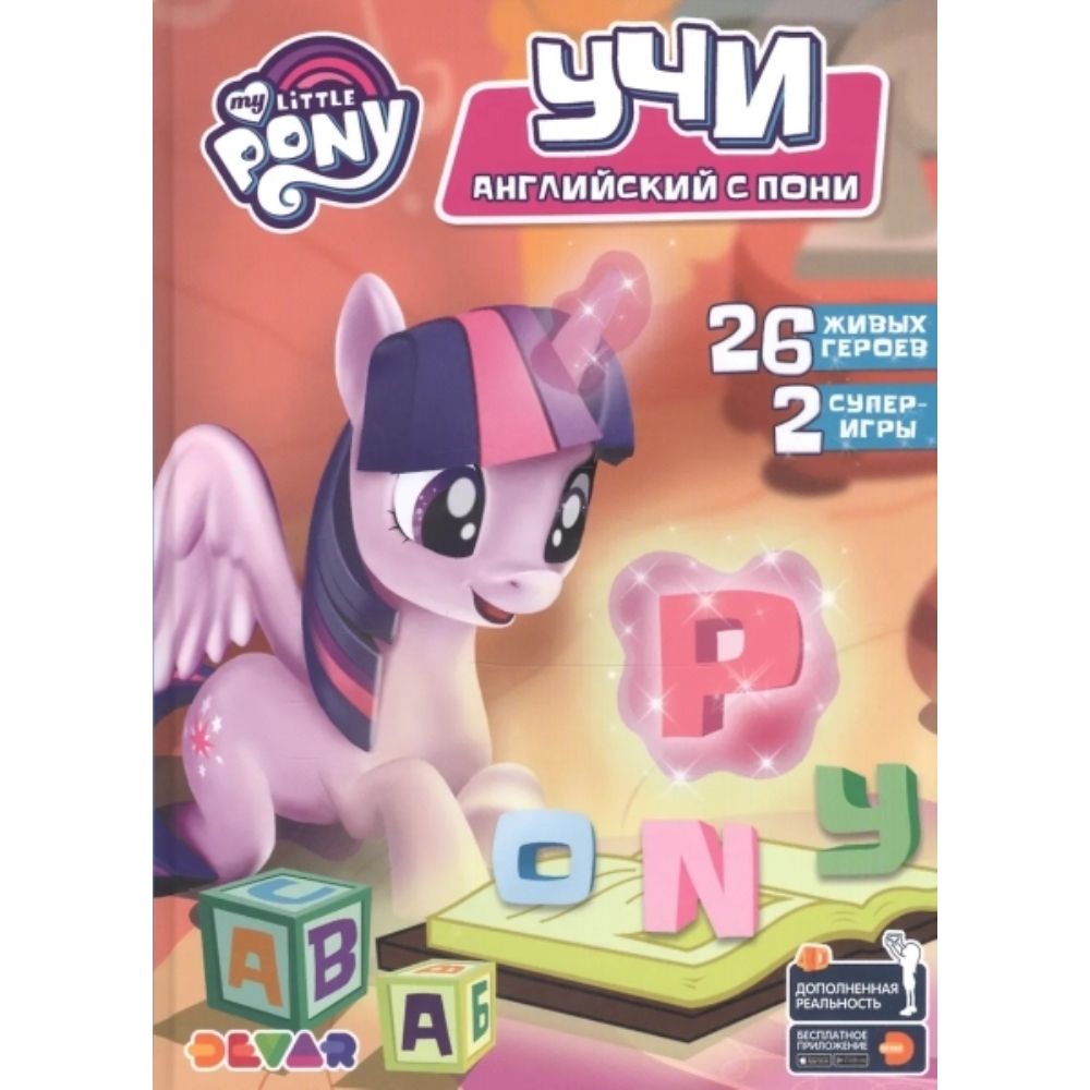 Яркая и красочная книга "Учи английский с пони" не похожа на другие азбуки. Герои помогут в освоении незнакомого языка, расскажут немного о себе и предложат поиграть в интересные, а главное, познавательные игры. Ребёнок чуть больше узнает об Эквестрии, о её жителях и заодно играючи выучит английский алфавит. А по изучению всех букв малыш сможет с гордостью повесить на стену диплом от самой принцессы Селестии!