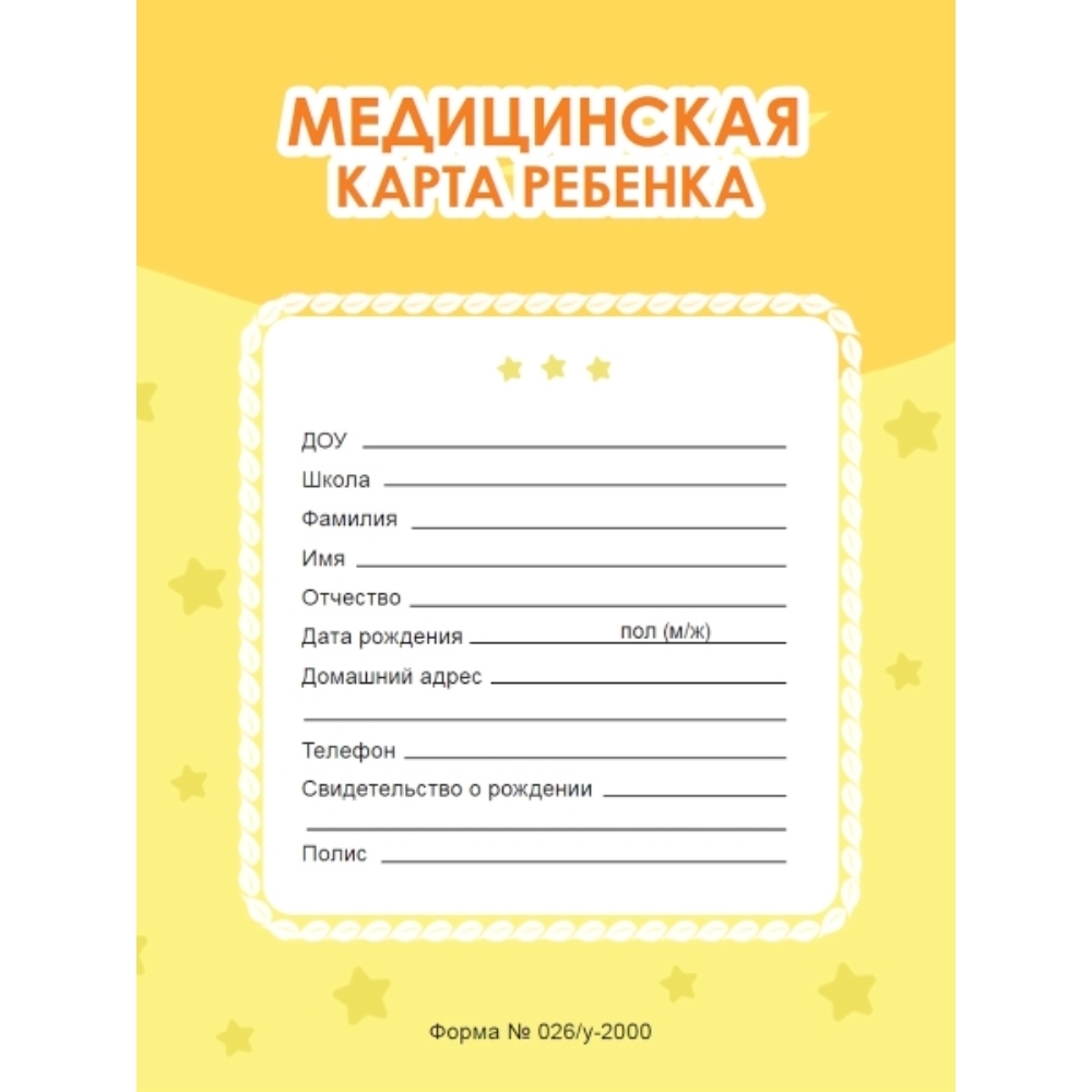 Медицинская карта ребёнка составлена в соответствии с утверждённой формой № 026/у-2000 и предназначена для использования в образовательных учреждениях: детских садах и школах. Обложка карты выполнена из плотного целлюлозного картона с глянцевой ламинацией, благодаря чему карта сохранит аккуратный вид в течение долгого времени.