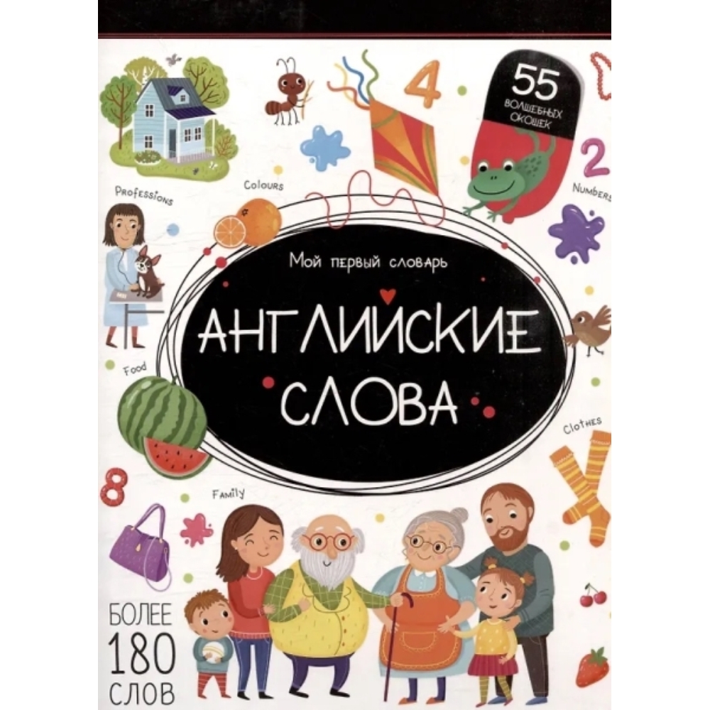 Книга «Английские слова» из серии «Мой первый словарь» поможет малышу начать изучение своего первого иностранного языка. В книге ребёнка ждут подборки слов по самым важным темам: «Моя семья», «Цвета и цифры», «Животные», «Еда», «Одежда», «Город», «Действия». Ко всем темам есть простые задания, которые помогут научиться применять новые слова в речи. На каждой странице малыш найдёт яркие иллюстрации к словам и занимательные окошки, которые сделают занятия ещё интереснее. Учиться легко и весело вместе с Malamalama!