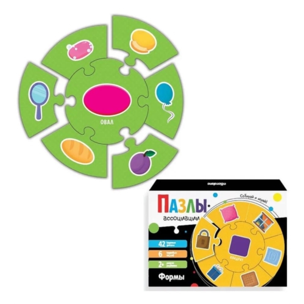 Круговые пазлы-ассоциации «Формы» от Malamalama — это простой и интересный способ всестороннего развития малыша. Пазлы созданы, чтобы сделать весёлую игру полезной: развивайте мелкую моторику, логику, мышление, расширяйте кругозор ребёнка, учите новые слова — простейшие геометрические фигуры и предметы, которые им соответствуют. Внутри шесть круговых пазлов с крупными деталями и объединяющими центрами, с которыми можно играть в разные познавательные игры. Можно придумать свои игры, а можно воспользоваться инструкцией. Узнавайте новое, играя!
