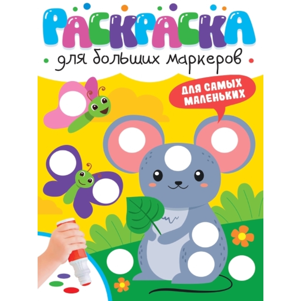 Раскраска с цветными иллюстрациями создана специально для больших точечных маркеров, но также подойдёт для рисования пальчиками, карандашами и фломастерами! На каждой странице есть белые кружочки, которые необходимо аккуратно закрасить соответствующим цветом, благодаря чему ребёнок активно тренирует мелкую моторику, логику, аккуратность и учится запоминать цвета.