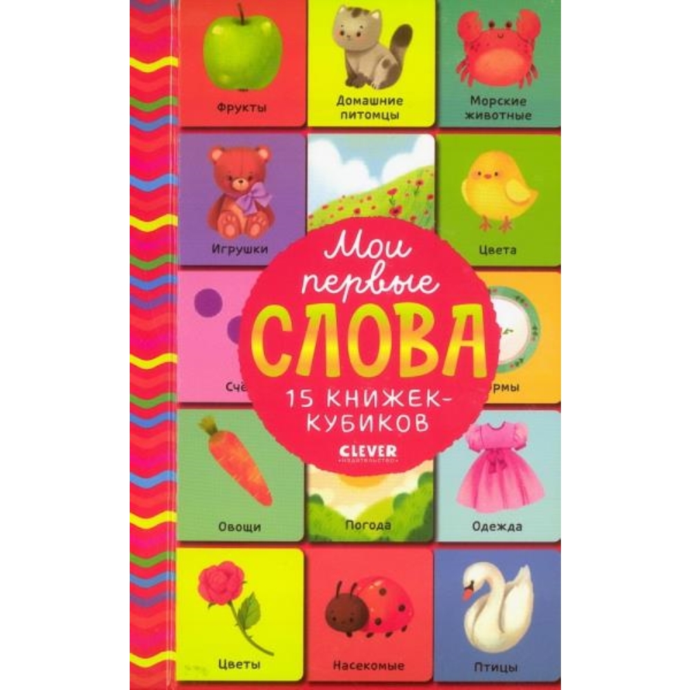 15 книжек-кубиков «Мои первые слова. Русский язык» станут отличным подарком малышу уже с рождения. Даже самые крошечные малыши интересуются книжками. И хорошо, когда книжки для них делают такие же крошечные. Это одновременно и веселая игра, и возможность быстро освоить окружающие предметы, цвета и счет. В удобной шкатулке-сортере собраны 15 книжечек-кубиков. У них плотные картонные странички, которые позволят ребенку развить мелкую моторику, словарный запас, речь и интеллект. На кубиках нарисованы животные, предметы одежды, игрушки - все, что знакомо малышам. И над каждым рисунком - слово крупными буквами.