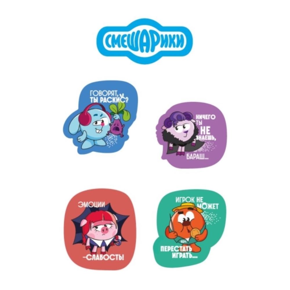 Говорят, ты раскис? Побалуй своего внутреннего ребенка! Бараш, Копатыч, Крош и Нюша специально для этого примерили на себя новые образы. Задай стиль своему телефону с помощью объемных стикеров. В наборе 5 стикеров, залитых смолой. 3Д наклейки располагаются на подложке. Набор упакован в целлофановый пакетик с евпроподвесом. 3Д стикеры на телефон – это отличный подарок себе, а также сестрам, братьям и детям на Новый год или на день рождения. Собери всю коллекцию Смешариков: Смешарики. 3Д стикеры на телефон Смешарики. Наклейки (24 наклейки на 2 листах) Смешарики. Переводные татуировки Смешарики. Блокнот шалость удалась! (формат А5, 128 стр., с цитатами и картинками) Детский календарь настенный на 2026 год. Смешарики (290х290 мм)