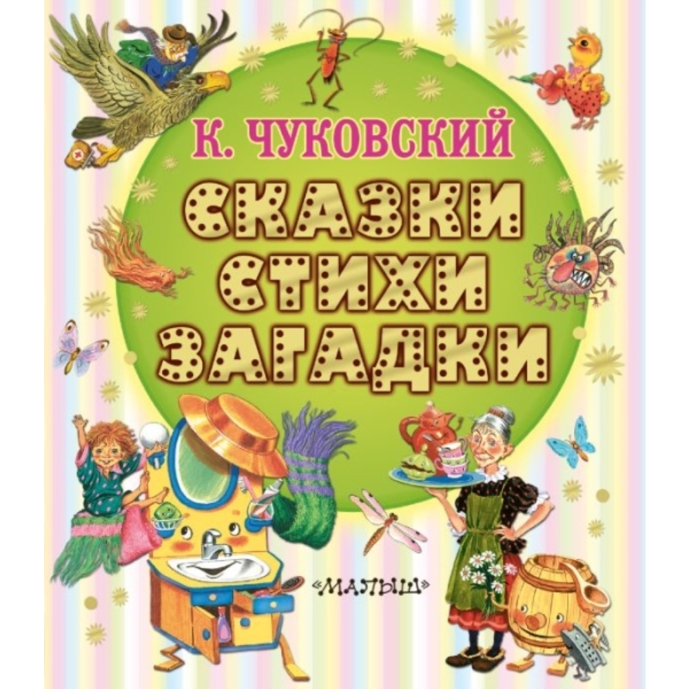 Сборник сказок, стихов, песенок и загадок знаменитого классика детской литературы К. Чуковского. В книгу вошли самые популярные произведения писателя для самых маленьких – «Муха-Цокотуха», «Айболит», «Тараканище», «Мойдодыр», весёлые стихи про закаляку и бебеку, английские народные песенки о храбрецах и рогатой улитке, о Котауси и Мауси и много-много других произведений К. Чуковского. Удобный формат позволит книге уместиться в маминой сумочке, и любимые герои всегда будут рядом с малышом. Рисунки С. Бордюга и Н. Трепенок, И. Глазова, С. Сачкова, В. Сутеева.