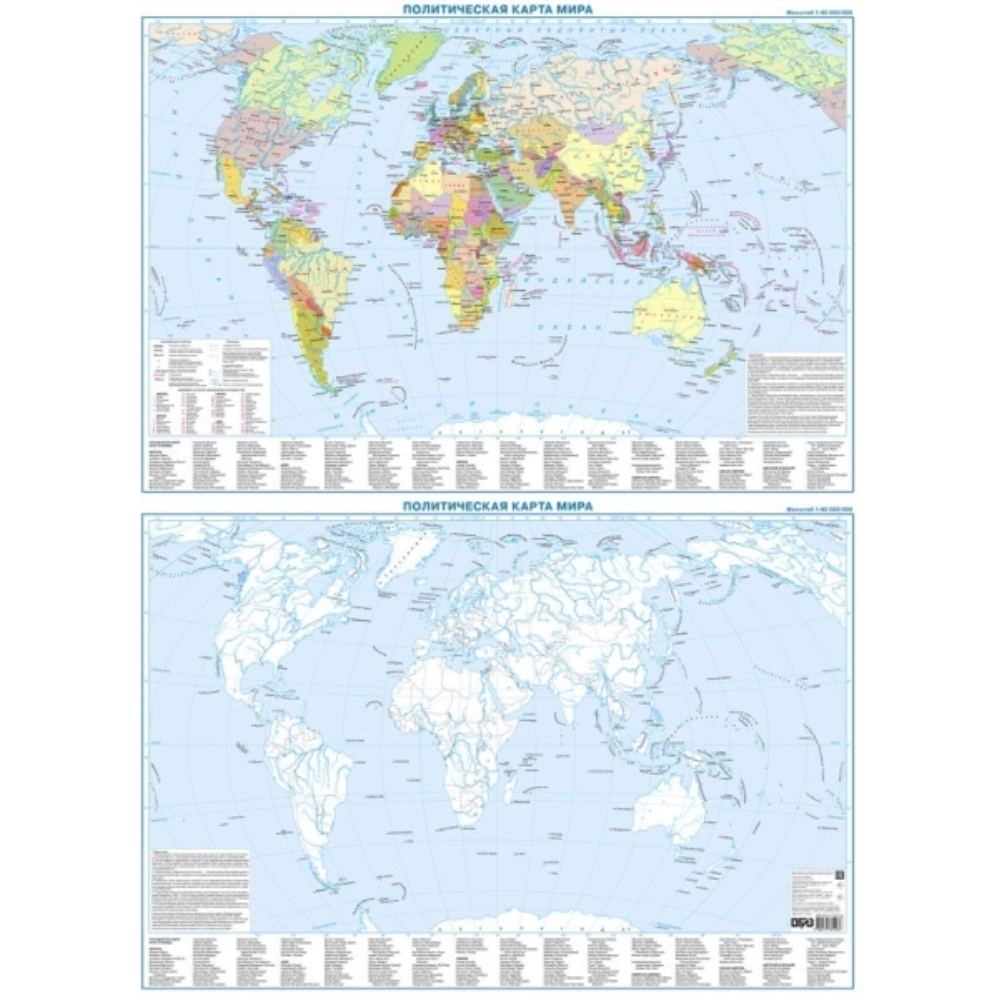 Превратите ваше пространство в источник знаний. Представляем вам двустороннюю карту формата 88х58 см на плотном картоне. Политическая карта мира и контурная карта на обороте масштаба 1:40 000 000 не просто украсит ваш интерьер, но и станет незаменимым помощником в изучении географии. С её помощью вы сможете легко ориентироваться во множестве государств и их столиц! Наша карта использует богатую цветовую палитру, чтобы выделить каждую страну, делая изучение географии не только увлекательным, но и визуально привлекательным. Полный список государств и столиц по континентам: Все данные собраны в одном месте, легко доступны и структурированы. Идеально подходит для школьников, стремящихся повысить свои знания о политической карте мира. Карта может стать элементом декора вашего дома или офиса. По данным международных исследований, визуальные учебные материалы повышают усваиваемость информации на 70%. Наша Политическая карта мира - это источник знаний, который расширяет горизонты! На ламинированной стороне - контурная карта - все границы, столицы и основные объекты можно подписывать и раскрашивать стирающимися маркерами, что делает процесс познания интерактивным и увлекательным. Наша двусторонняя карта - это не просто учебные пособия, а настоящие источники вдохновения, семейного досуга и интеллектуального развития. Подарите себе и близким возможность познавать мир каждый день!