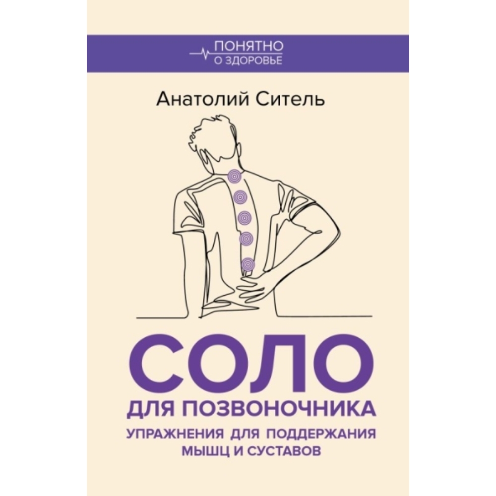 В своей книге «Соло для позвоночника» профессор Анатолий Ситель знакомит читателя со своей уникальной методикой самоисцеления, которая позволит читателю самостоятельно с помощью специальных лечебных поз-движений избавиться от болей в разных отделах позвоночника и суставах, восстановить их гибкость и подвижность за короткий срок. В основе метода самостоятельной ликвидации боли в позвоночнике и суставах лежит идея расслабляющего воздействия на спазмированную мышцу или группу мышц, непосредственно связанных с проблемным отделом позвоночника или суставом. Автор книги убежден, что состояние позвоночника определяет жизненный потенциал человека, что здоровый позвоночник — шанс каждого из нас на активное долголетие без болезней и страданий. Ведь именно через позвоночник идут сигналы и нервные импульсы-команды ко всем жизненно важным органам! Если вы хотите восстановить жизненные силы и избавиться не только от болей в позвоночнике и суставах, но также от головных и сердечных болей, нарушений сердечного ритма и головокружений, сбоев в работе органов пищеварения, а также других хронических недомоганий — прежде всего восстановите здоровье позвоночника по предложенной методике.