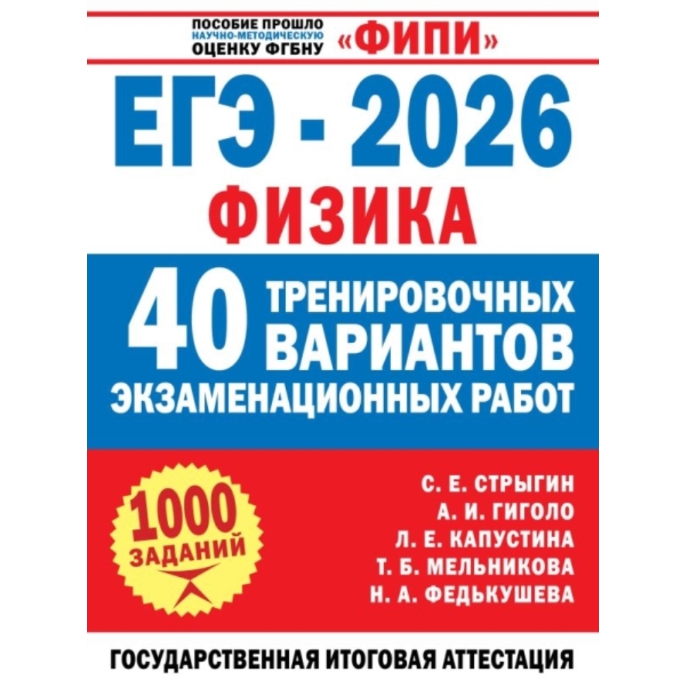Пособие предназначено для отработки обучающимися умений и навков выполнения типовых экзаменационных заданий при подготовке к ЕГЭ по физике и может использоваться на уроках и во внеурочной деятельности. Задания разного уровня сложности предоставляют возможность систематизировать и углубить полученные за время обучения знания и объективно оценить качество освоения образовательной программы по предмету. Включает: 40 тренировочных вариантов экзаменационных работ, соответствующих демоверсии ЕГЭ 2026 года; ответы к заданиям и критерии их оценивания