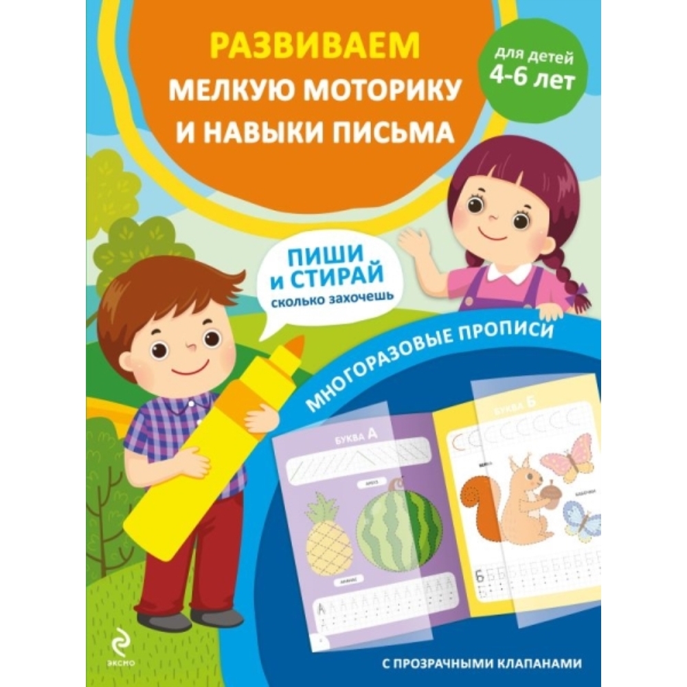 Эти необычные многоразовые прописи помогут детям 4-6 лет развить мелкую моторику и научиться писать печатные буквы. Бумажные страницы справа и слева накрываются прозрачными клапанами из специального материала - по нему можно многократно писать любым фломастером или маркером, а потом стирать написанное влажной салфеткой. Пользоваться такими прописями можно бесконечно долго, совершенствуя правильность выполнения графических заданий и точность написания букв. Развитие мелкой моторики способствует совершенствованию когнитивных функций мозга: памяти, внимания, логического, творческого и критического мышления, которые помогут дошкольнику эффективнее учиться. Лучше, если ребёнок начнёт знакомиться с пособием в присутствии взрослого, который может задать наводящие вопросы или попросить выполнить какое-то задание несколько раз. В дальнейшем дошкольник может с удовольствием выполнять знакомые упражнения самостоятельно. Ребёнок будет писать в прописях много-много раз, не задумываясь: "а вдруг не получится". Эта тетрадь станет для малыша тренажёром, который поможет ему успешно подготовиться к поступлению в первый класс.