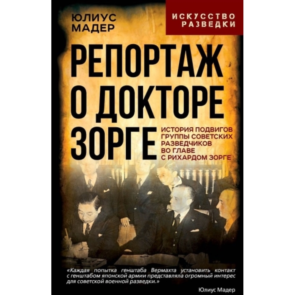 «Репортаж о докторе Зорге» - захватывающая история героев, чьи имена стали символом мужества и преданности делу мира. Книга Юлиуса Мадера погружает читателя в эпоху напряженных международных отношений периода 1933-1941 годов, рассказывая о подвигах группы советских разведчиков, возглавляемых легендарным Рихардом Зорге. С 1942 по 1945 годы были казнены, замучены насмерть или погибли голодной смертью в тюремных застенках члены разведгруппы «Рамзай»: Герой Советского Союза Рихард Зорге, югославский коммунист Бранко Вукелич, а также японские патриоты Ходзуми Одзаки, Иотоку Мияги, Сиге Мидзуно, Иосио Кавамура, Сумио Фунакоси и Томо Китабаяси. Откройте для себя удивительную историю тех, чье мужество и самоотверженность навсегда останутся в памяти поколений!