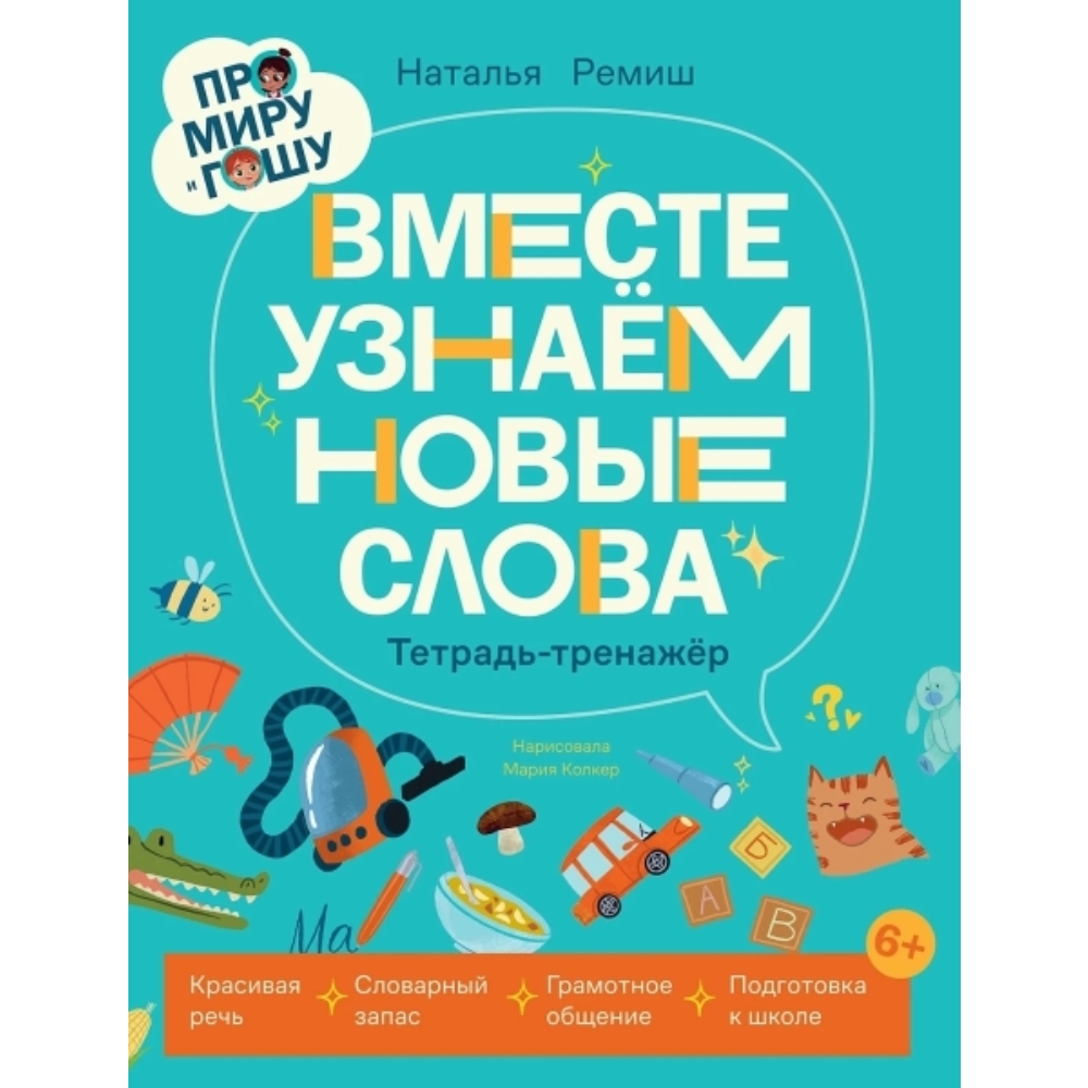 «Мира и Гоша. Вместе узнаём новые слова» — тетрадь-тренажёр, где каждое задание превращается в маленькое приключение с любимыми героями Мирой и Гошей. Вместо зубрёжки — мини-истории, загадки, игровые задания и бытовые диалоги. Вместо однообразных упражнений — вопросы, которые заставляют подумать, посмеяться или даже поспорить. Ребёнок не только расширяет словарный запас, но и учится правильно называть предметы, действия, явления, подбирать слова по смыслу и строить собственные фразы.