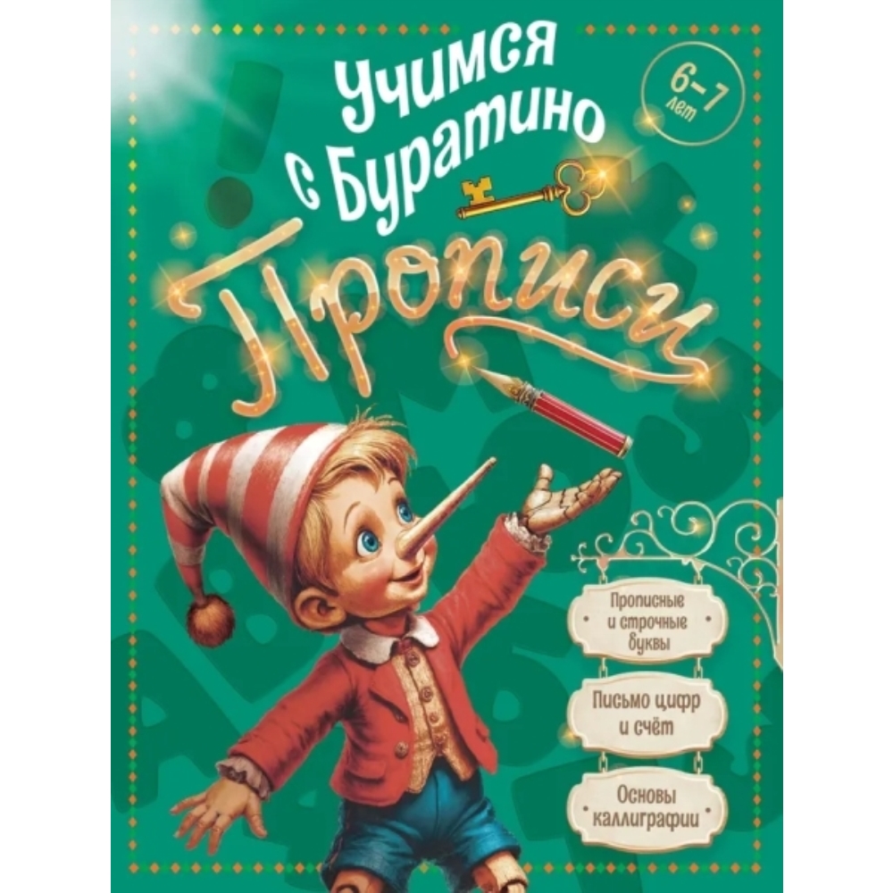 Учиться с Буратино весело и интересно! Эти необычные прописи помогут ребёнку научиться считать, писать и различать цифры, правильно писать прописью отдельные буквы и вписывать их в слова, развить мелкую моторику и координацию движений руки, стать более внимательным и усидчивым. Ребёнок будет с удовольствием выполнять увлекательные и полезные задания вместе с героями любимой сказки «Золотой ключик, или Приключения Буратино».
