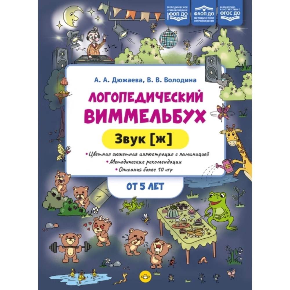 Логопедический виммельбух — современное пособие для развития речи. В пособии представлены сюжетная иллюстрация-виммельбух, а также игры и задания для развития лексикограмматических представлений и связной речи детей, автоматизации звука [ж], развития памяти, мышления, воображения и внимания. Можно использовать на индивидуальных и групповых занятиях.