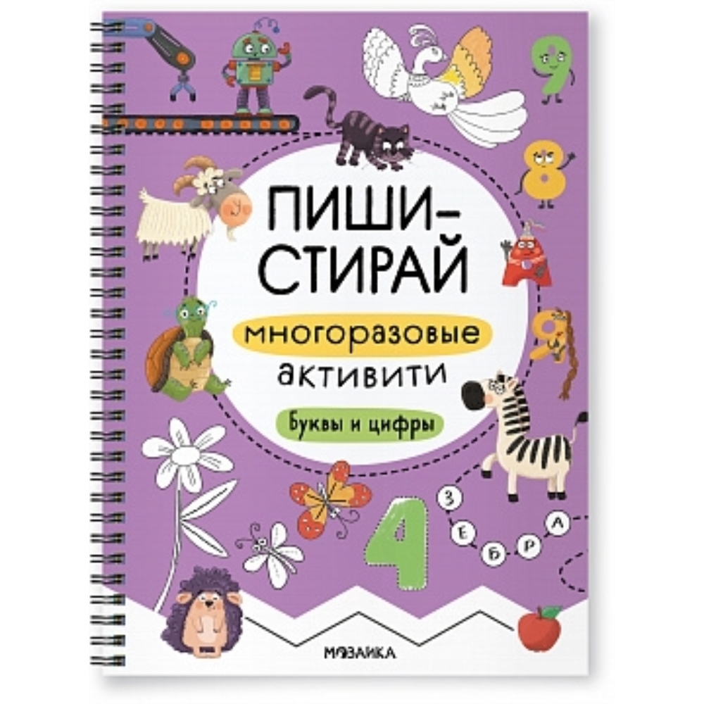 Многоразовые активити. Буквы и цифры (Пиши-стирай) Книга «Многоразовые активити. Буквы и цифры» из серии «Пиши-стирай» — отличный помощник для развития и развлечения ребенка. Страницы в них ламинированные. Если захочется выполнить задание еще раз, достаточно протереть страничку тряпочкой — и можно творить снова! Главное, использовать маркеры на водной основе. Внутри книги собраны разнообразные задания в соответствии с возрастными возможностями ребенка, которые способствуют развитию логики, мышления, мелкой моторики, аккуратности.