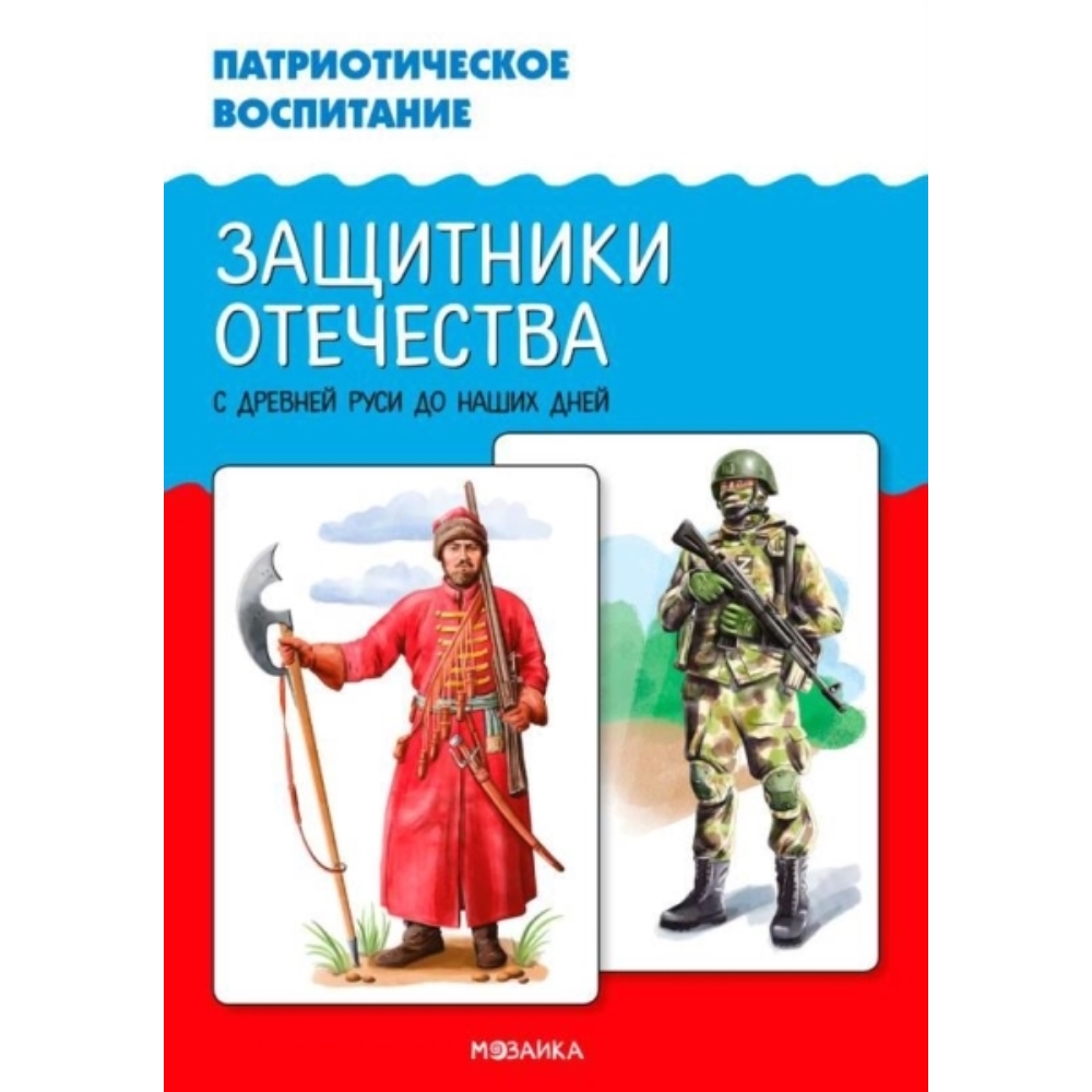 Патриотическое воспитание. Защитники Отечества. С древней Руси до наших дней. ФГОС. ФОП Комплект картинок «Защитники Отечества» содержит изображения русских воинов с древнейших времен до современности. Каждая картинка сопровождается краткими пояснениями, предназначенными для чтения детям 5–7 лет. Картинки могут послужить основой для интересной беседы с детьми, образовательного события, образовательного проекта и т. п. Цель пособия — вызывать у детей интерес к истории России, расширять представления о Российской армии, воспитывать уважение к защитникам Отечества. Пособие рекомендуется для занятий с детьми в детском саду и дома.