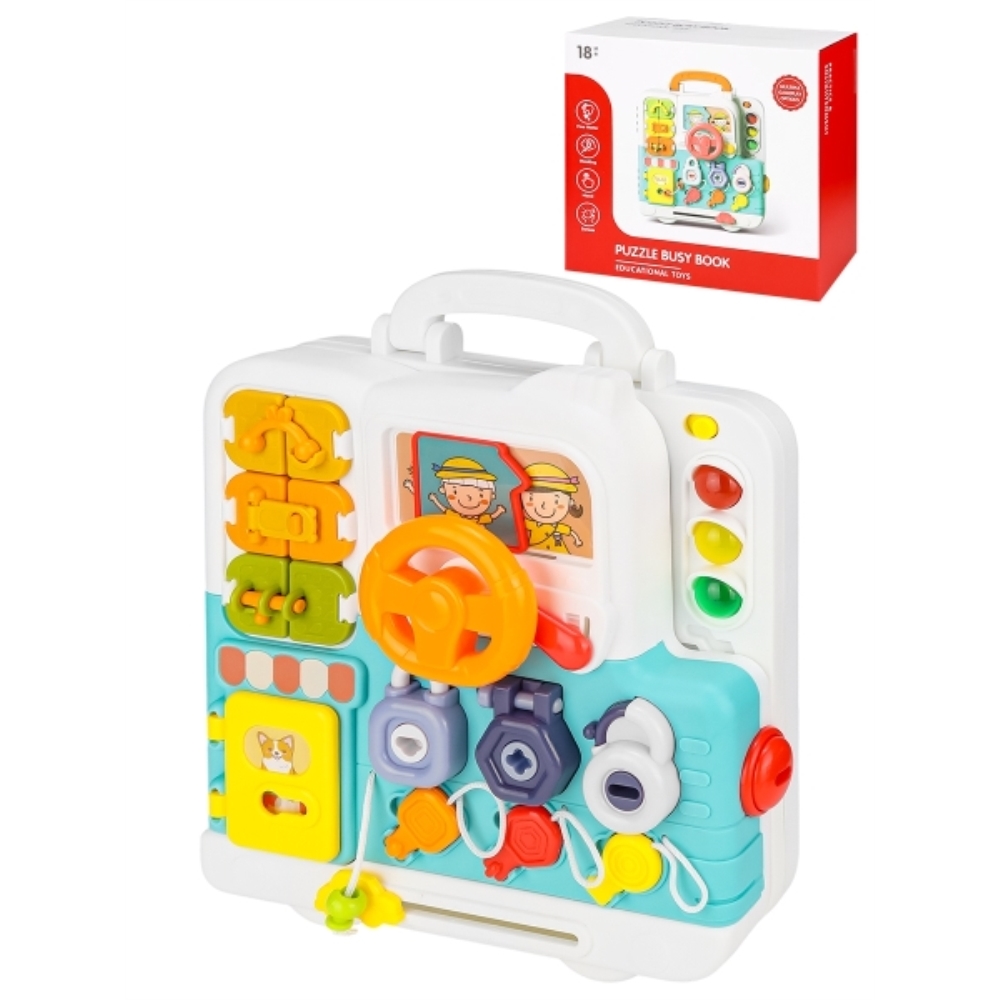 Развивающая игрушка "Бизиборд". Понравится любому ребенку. Развивает мышление, мелкую моторику. Особеннности: свет, звук. Работает от батареек типа 3*АА (не в комплекте). Размер: 27х23 см. В коробке (размер: 28х10х26 см)