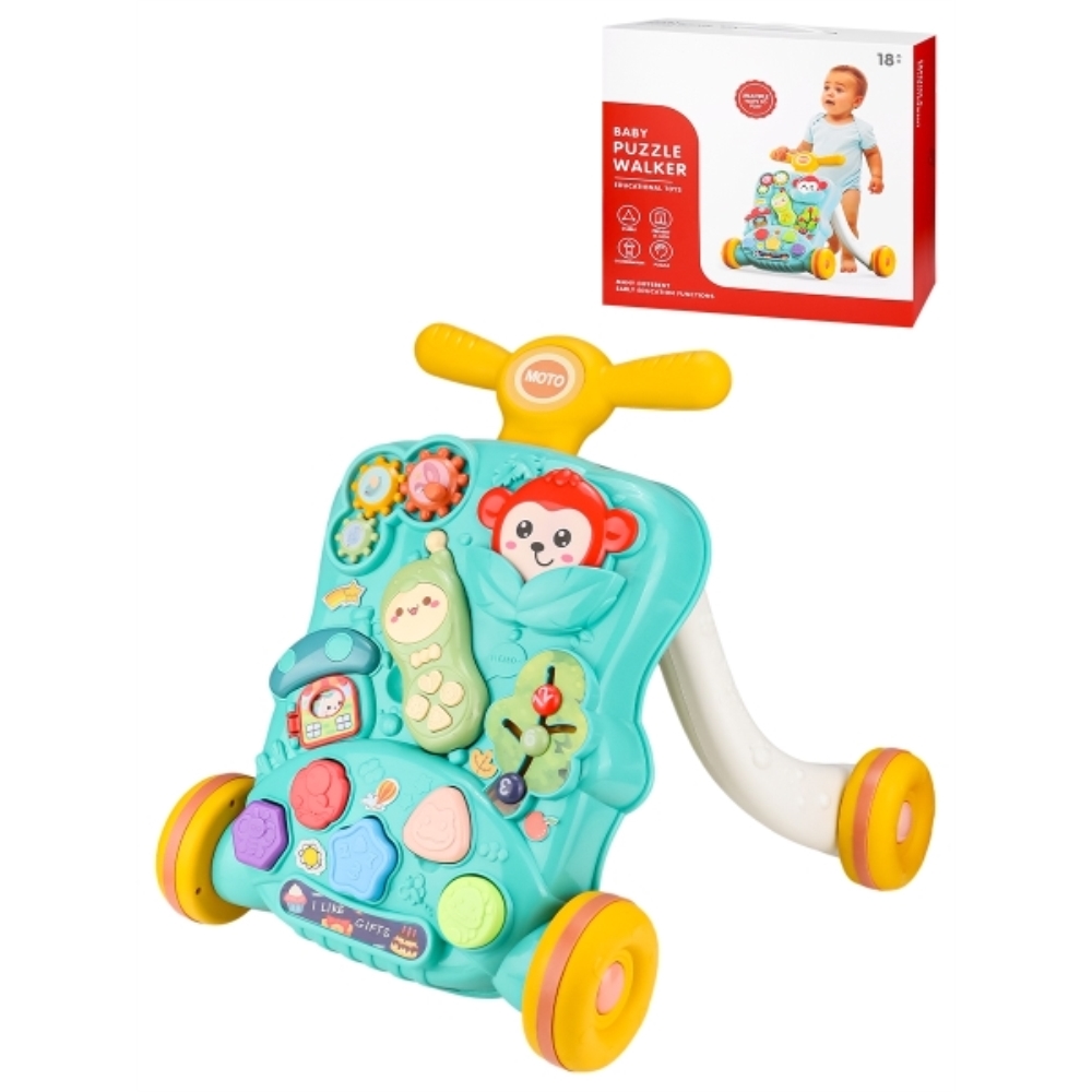 Детская машинка-каталка — это настоящий развивающий центр и тренажер-ходунки одновременно. Малыши могут учиться ходить, опираясь на каталку, развлекаясь, обучаясь и играя. Модель дополнена множеством небольших предметов разных форм, которые поспособствуют