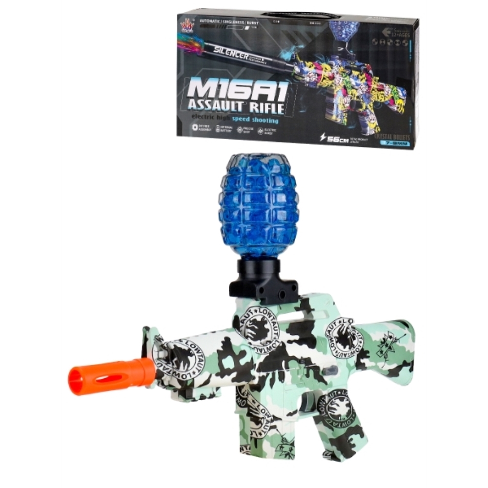 Автомат с гидропулями - это мощный инструмент. В комплекте: 1000 пуль, граната, глушитель, свет, USB.