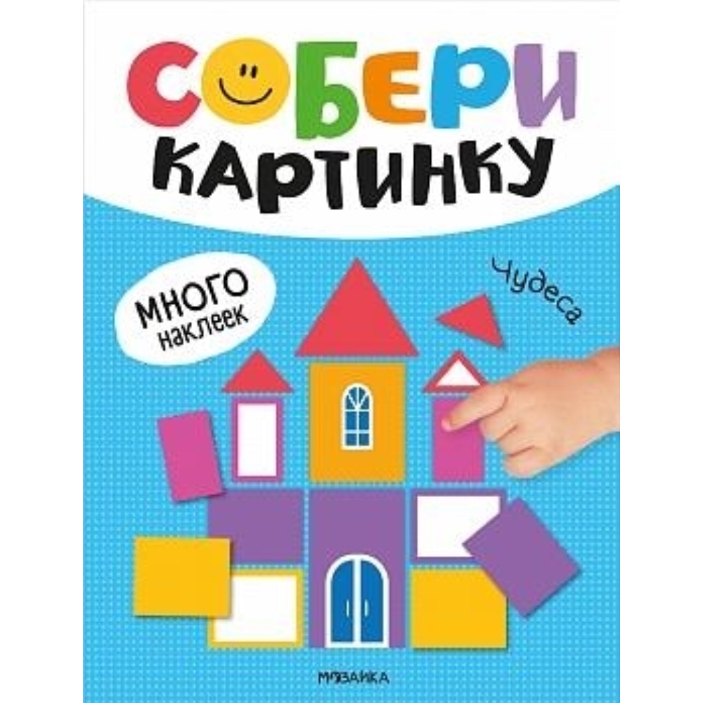 Чудеса (Собери картинку), книжка с наклейками Книга «Чудеса» серии «Собери картинку» поможет ребенку почувствовать себя настоящим творцом — ведь с помощью наклеек разных геометрических форм он сможет создать яркие картинки. Крупные наклейки удобно клеить, и малыш сразу сможет увидеть результат своей работы. Занятия по этой книжке помогут потренировать мелкую моторику и координацию движений, а также поспособствуют развитию речи, интеллекта и внимательности.
