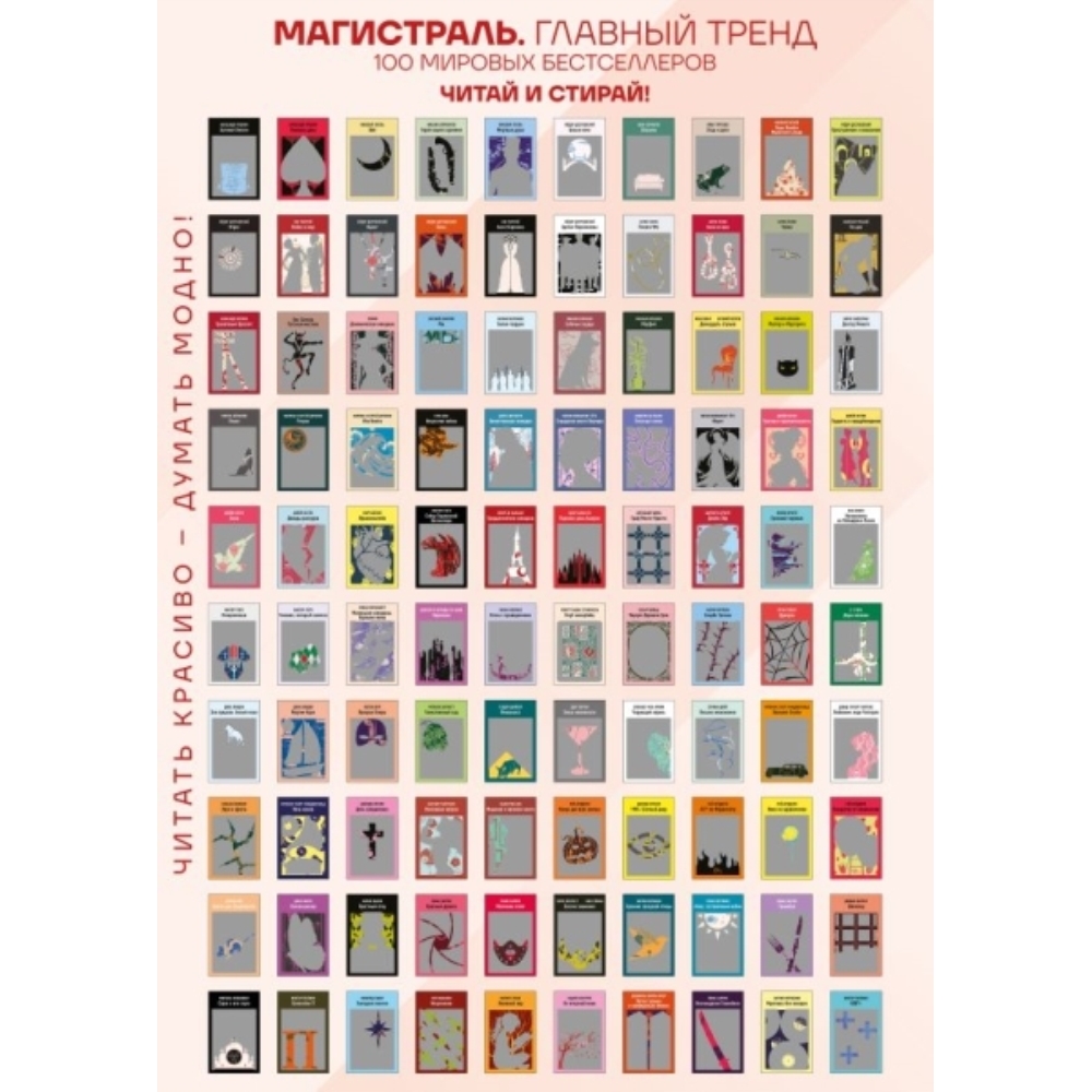 Откройте мир великих историй с нашим уникальным плакатом-постером "100 главных книг серии Магистраль"! Каждый потёртый прямоугольник - это возможность познакомиться с литературной классикой и современными шедеврами, собранными в одном стильном и вдохновляющем плакате. Идеальное решение для книжных гурманов и тех, кто ищет новые впечатления. Этот постер не только украшение стен, но и увлекательное путешествие по страницам самых значимых книг всех времен. Дарите вдохновение себе и близким, отмечая каждый прочитанный шедевр. Подарок, который объединяет и мотивирует открывать всё больше новых горизонтов в мире литературы!