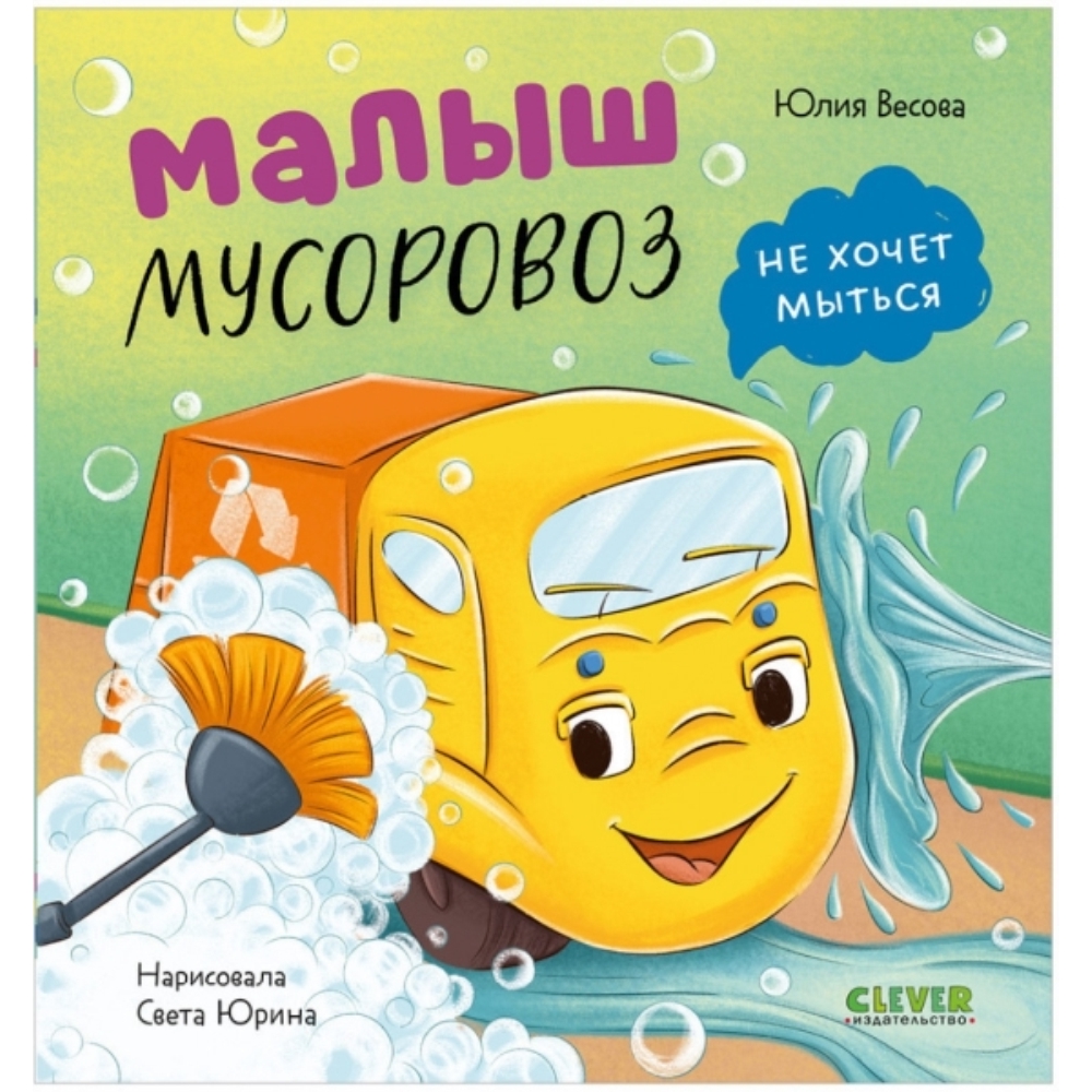 «Малыш мусоровоз не хочет мыться» — добрая книжка о том, почему важно быть чистым, а мыться — это совсем не страшно. Обаятельный герой, похожий на всех детей, яркие картинки, простые стихи и много слов для звукоподражания — идеальное чтение перед сном.