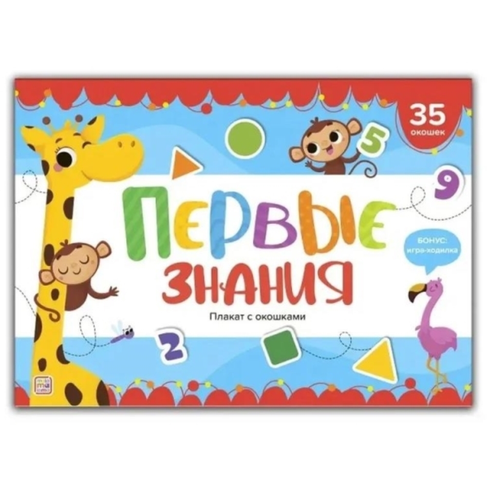 Плакаты с окошками от Malamalama — это уникальный инструмент для получения новых знаний! Плакат «Первые знания» представляет собой увлекательное пособие для первого знакомства малыша с цифрами, буквами, цветами и формами с помощью разнообразных заданий и вопросов. Красочные иллюстрации и занимательные окошки стимулируют интерес к занятиям и помогают усваивать информацию в игровой форме. А игра-ходилка на обороте поможет не только узнать новое, но и весело провести время! Плакат с окошками может служить отличным дополнением к учебному процессу в школе, детском саду или дома. А благодаря яркому дизайну он украсит интерьер любой детской комнаты или класса. Изучать новое весело вместе с Malamalama!