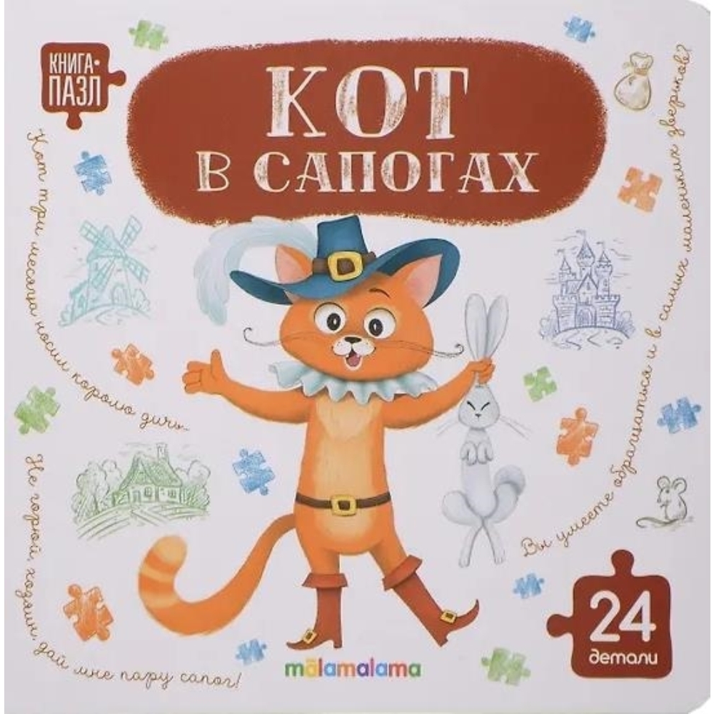 Книга-пазл "Кот в сапогах" — это первое знакомство с традиционной сказкой в игровой форме! В книге — 4 пазла, в каждом из которых 6 крупных деталей. Под пазлами — яркие картинки с подсказками. Удобная для детских пальчиков выемка поможет малышу легко научиться самостоятельно вынимать и складывать детали. Поэтому книги-пазлы — это ещё и развитие мелкой моторики, логики, воображения, пополнение словарного запаса. А ещё книга небольшого формата — её удобно взять с собой в дорогу или на прогулку. Узнавать новое интереснее вместе с Malamalama!