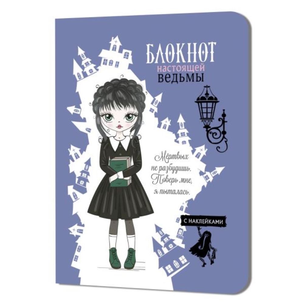 Блокнот по мотивам нашумевшего сериала несомненно порадует всех поклонников колдовства и магии. На его страницах вы найдёте оригинальные иллюстрации, а также забавные цитаты с чёрным «ведьминским» юмором. Благодаря удобному формату и линовке из мелких точек заметки в этом блокноте можно делать в любом месте и в любое время. А комплект наклеек с атрибутикой любимых героев поможет проявить креатив и украсить любимые аксессуары.