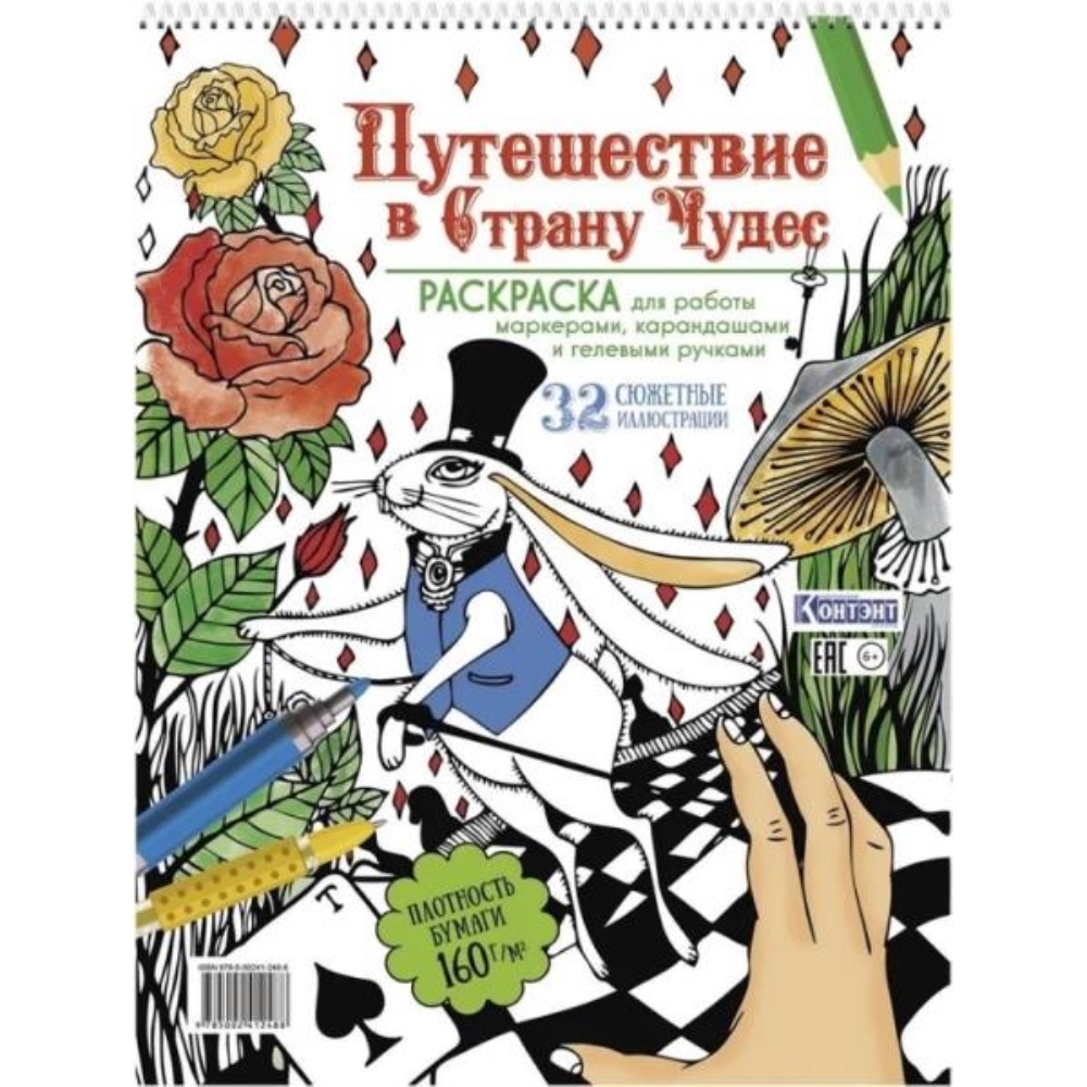 Раскраска по мотивам приключений Алисы в Стране Чудес перенесёт вас волшебный мир загадок и тайн. Издание включает в себя 32 удивительных проекта для работы маркерами, цветными карандашами и гелевыми ручками. Практичный формат, удобное скрепление на пружине, очень плотная бумага, атмосферные иллюстрации – отличный способ расслабиться и погрузиться в творчество в компании любимых героев. Следуйте за Белым кроликом и раскрашивайте с удовольствием!