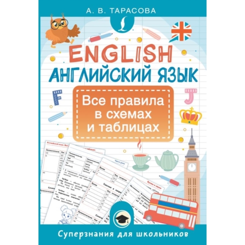 Тарасова Анна Валерьевна - лингвист, преподаватель с многолетним опытом работы, автор популярных учебных пособий для детей и взрослых. Это пособие - настоящий помощник для учеников начальной школы. В одной книге собраны все основные правила английского языка, изложенные простым и понятным языком. Сложные темы объясняются легко, без перегрузки терминами, а каждый раздел сопровождается примерами, подсказками и наглядными таблицами. Учебный материал адаптирован под школьную программу и охватывает всё необходимое для успешного изучения английского языка на каждом этапе. Книга подходит к любому школьному курсу и может использоваться как дополнение к урокам, для самостоятельного повторения и подготовки к контрольным работам. Главная цель пособия - не только помочь ребёнку запомнить грамматические правила, но и научить применять их на практике: при выполнении домашних заданий, в устной речи и на проверочных работах.